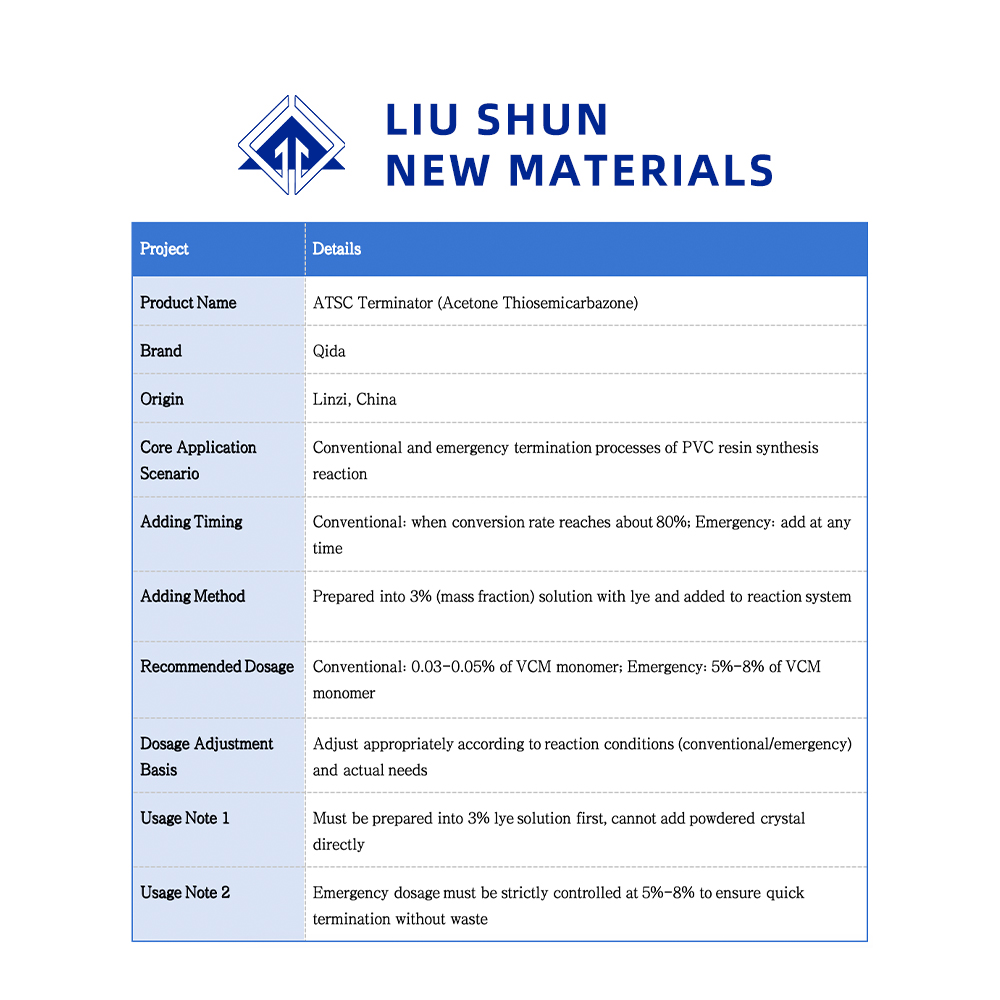 Ⅰ. Propósito: Se agrega acetona tioamina (ATSC) al reactor en la última etapa de la reacción, lo que puede terminar la reacción rápidamente