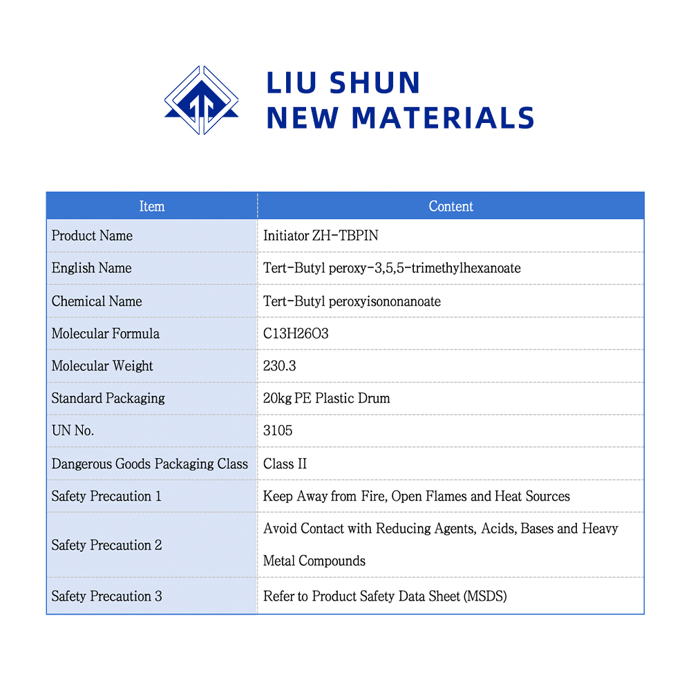 TBPIN es el agente de curado elegido para el proceso de moldeo en caliente de resina UP (SMC, BMC, ZMC, etc.), el rango de temperatura es de 120-170 ℃, los productos son bien tolerados, seguros y respetuosos con el medio ambiente.