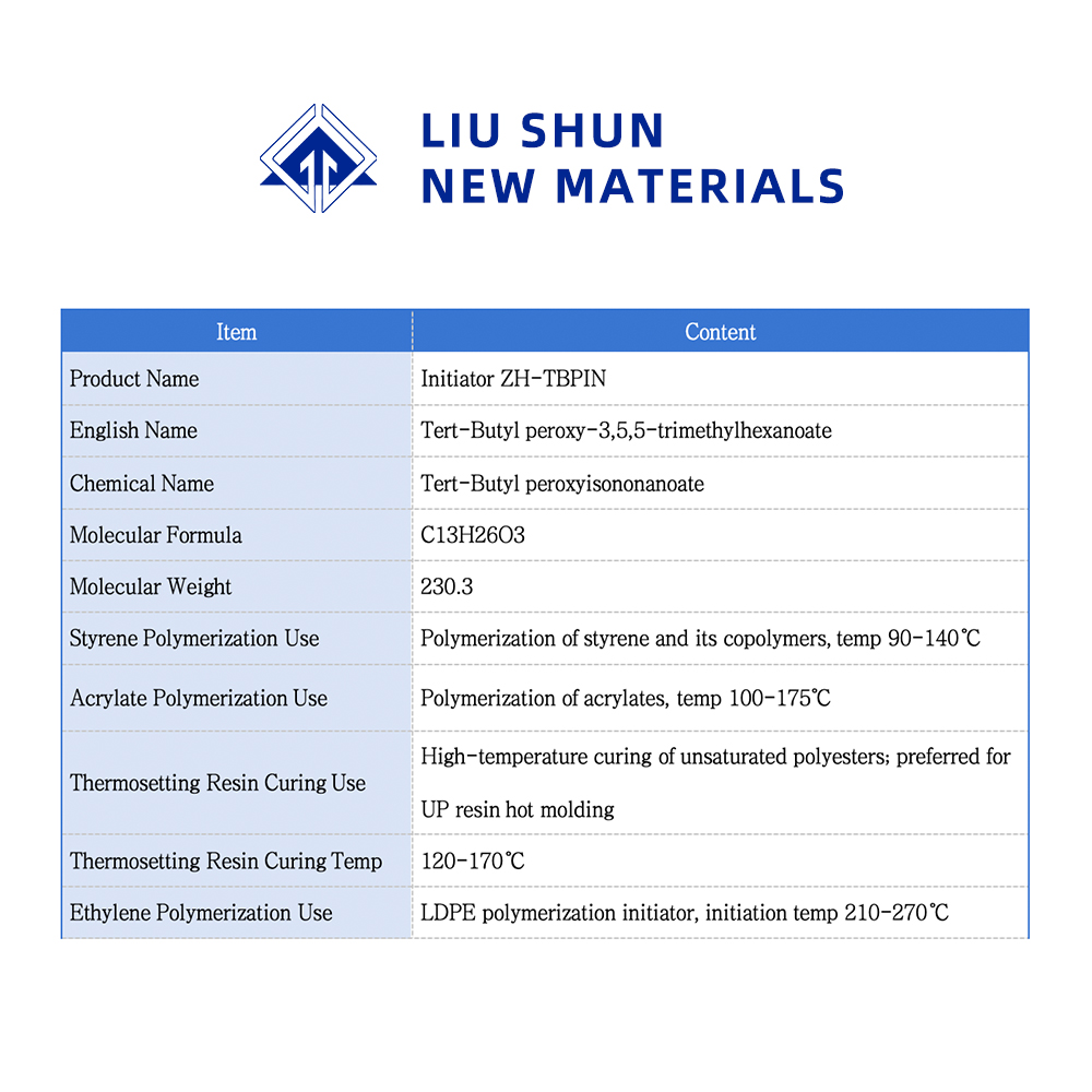 TBPIN es el iniciador de polimerización para la polimerización de LDPE, el rango de temperatura de inicio es de 210-270 ℃.